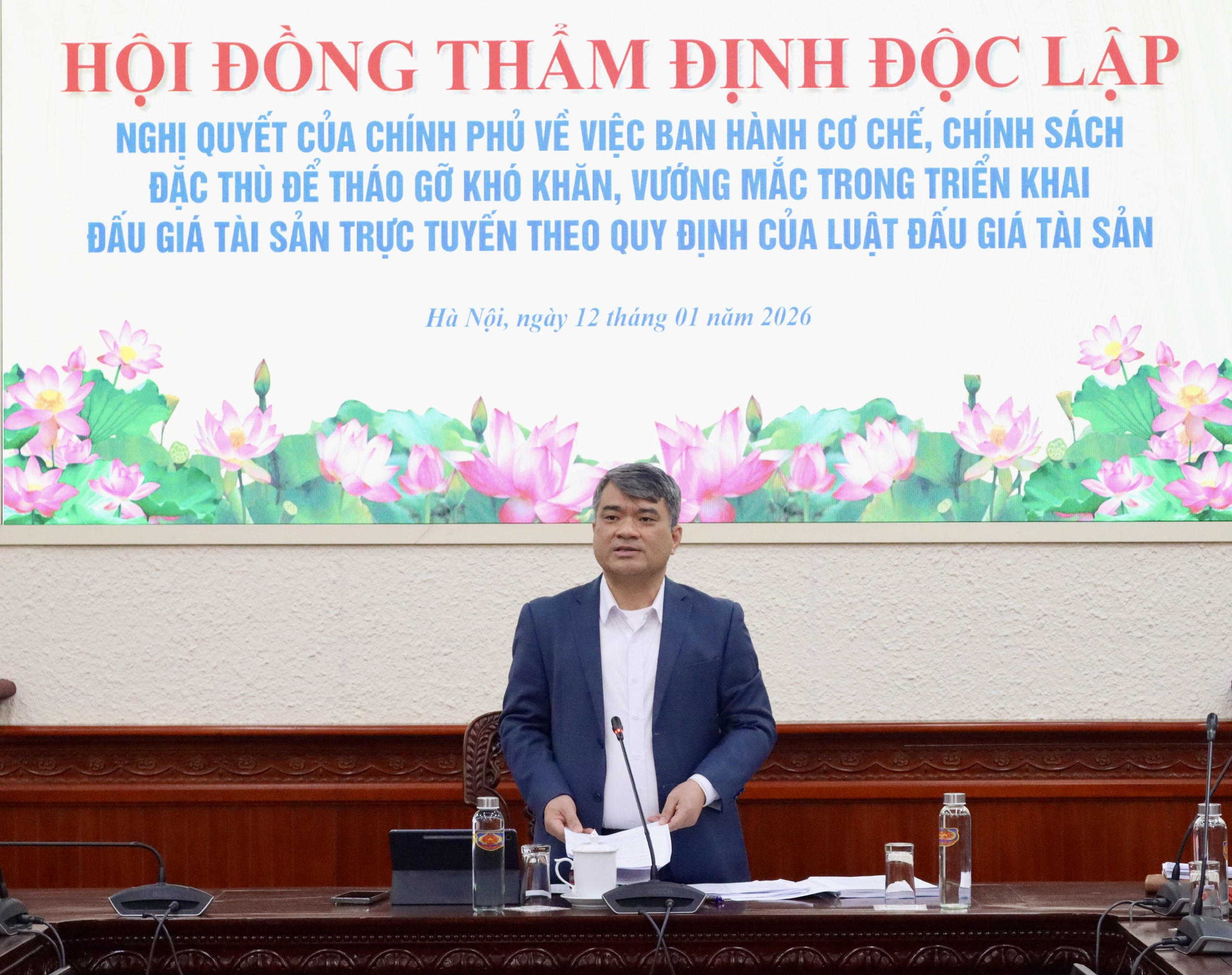 Chiều 12/1, Thứ trưởng Bộ Tư pháp Nguyễn Thanh Tú chủ trì Hội đồng thẩm định độc lập dự thảo Nghị quyết của Chính phủ về việc ban hành cơ chế, chính sách đặc thù để tháo gỡ khó khăn, vướng mắc trong triển khai đấu giá tài sản trực tuyến theo quy định của Luật Đấu giá tài sản.