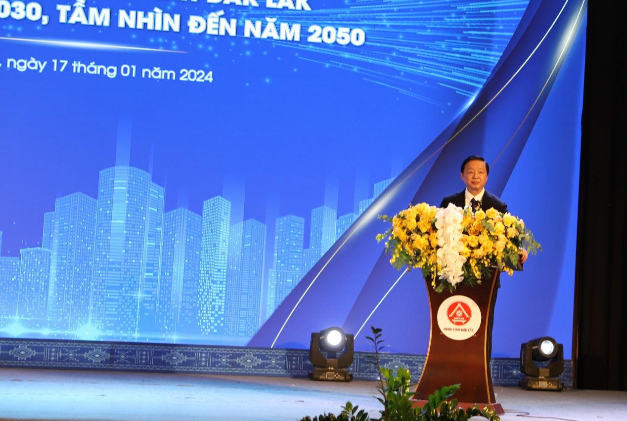 Phát biểu chỉ đạo Hội nghị, thay mặt Chính phủ, Phó Thủ tướng Trần Hồng Hà ghi nhận và đánh giá cao, biểu dương những thành tựu mà Đảng bộ, chính quyền và nhân dân tỉnh Đắk Lắk đã đạt được trong suốt chặng đường vừa qua. Quy hoạch tỉnh Đắk Lắk được công bố hôm nay, được xây dựng trên những lợi thế từ vị trí địa lý, điều kiện tự nhiên, thế mạnh từ con người của thủ phủ Tây Nguyên. Nhằm cụ thể hóa chủ trương của Bộ Chính trị tại Nghị quyết số 23 của Bộ Chính trị về Phương hướng phát triển về kinh tế, xã hội, đảm bảo quốc phòng an ninh Vùng Tây Nguyên đến năm 2030, tầm nhìn đến 2045.