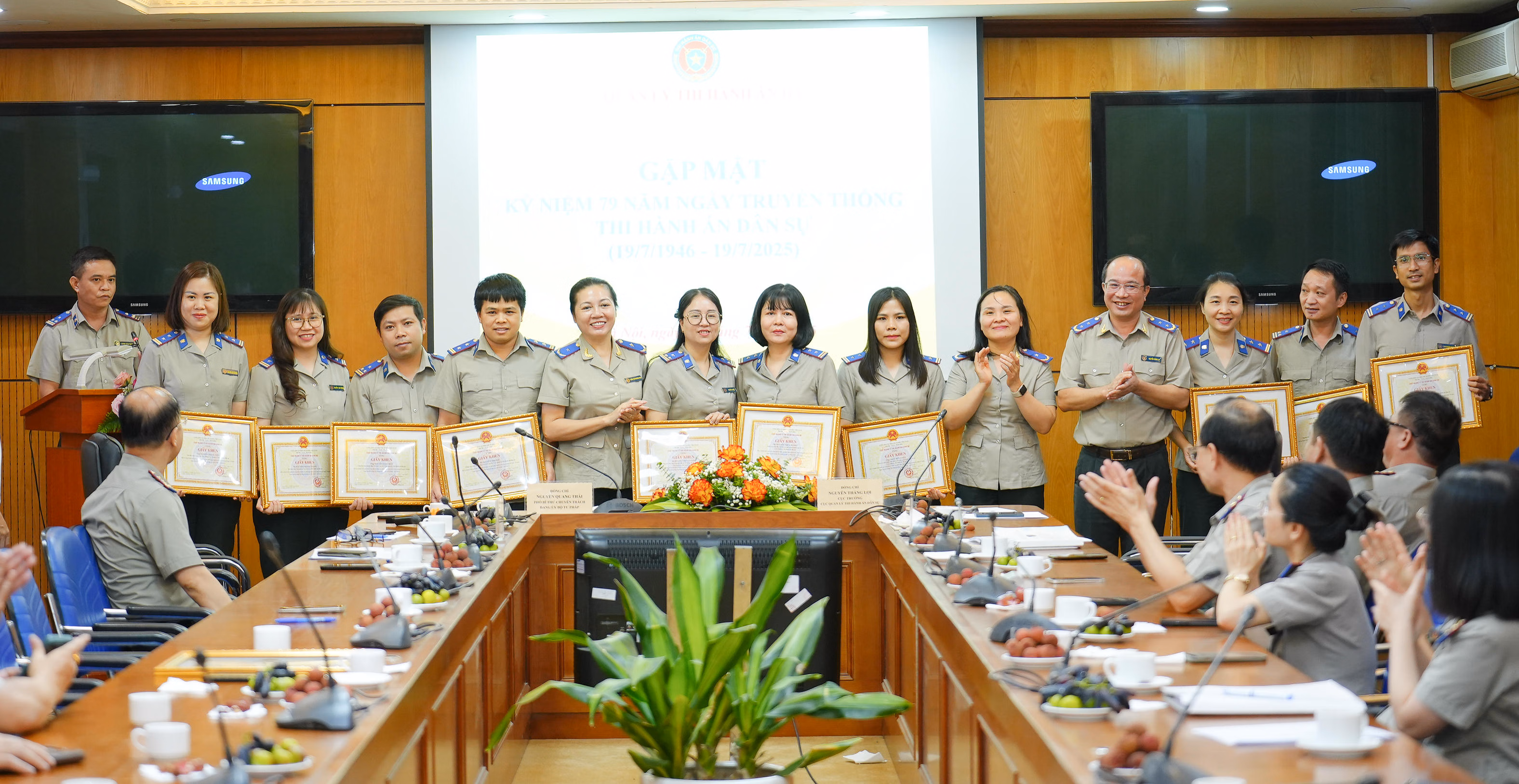 Nhân dịp này, Cục Quản lý THADS đã trao Bằng khen của Bộ trưởng Bộ Tư pháp cho ông Nguyễn Ngọc Vũ, Trưởng ban Tổ chức cán bộ do đã có thành tích xuất sắc trong phong trào thi đua “Ngành Tư pháp chung tay vì người nghèo – Không ai bị bỏ lại phía sau” giai đoạn 2023 – 2025; tặng Giấy khen đối với 17 tập thể và 140 cá nhân đã có thành tích xuất sắc trong đợt thi đua cao điểm lập thành tích xuất sắc chào mừng kỷ niệm 79 năm Ngày Truyền thống THADS (19/7/1946 – 19/7/2025).