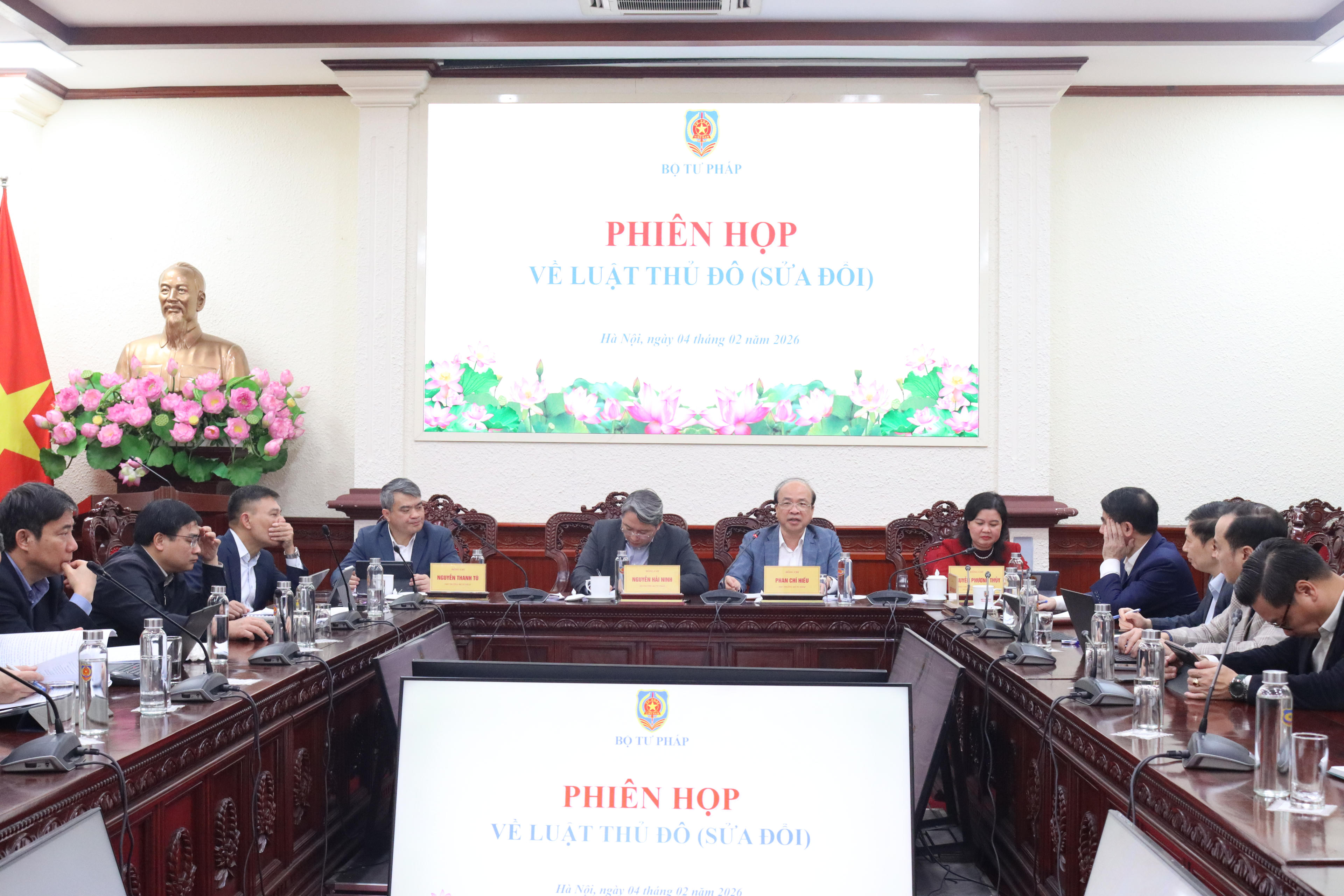 Sáng 4/2, Bộ trưởng Bộ Tư pháp Nguyễn Hải Ninh chủ trì Phiên họp về Luật Thủ đô (sửa đổi). Các Thứ trưởng Phan Chí Hiếu, Nguyễn Thanh Tú và Phó Chủ nhiệm Uỷ ban Pháp luật và Tư pháp của Quốc hội Nguyễn Phương Thuỷ cùng dự. Về phía TP Hà Nội có Phó Chủ tịch UBND TP Nguyễn Xuân Lưu.