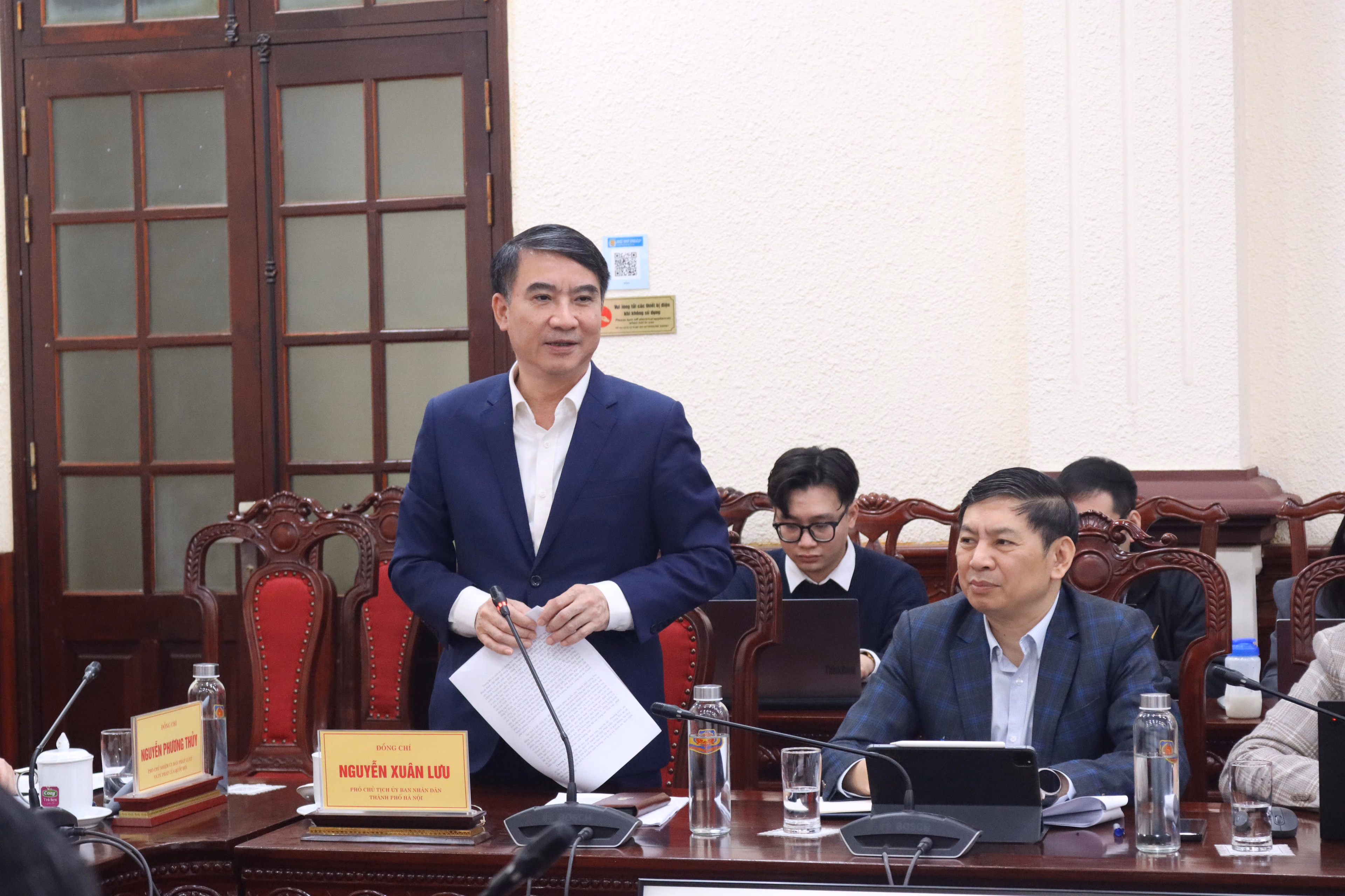Phát biểu tại Phiên họp, Thứ trưởng Nguyễn Thanh Tú đề nghị TP Hà Nội đẩy mạnh tiến độ triển khai xây dựng Nghị quyết thay thế Nghị quyết số 15-NQ/TW của Bộ Chính trị về phương hướng, nhiệm vụ phát triển Thủ đô Hà Nội đến năm 2030, tầm nhìn đến năm 2045 (Nghị quyết số 15-NQ/TW); những vấn đề lớn của Quy hoạch tổng thể Thủ đô để làm cơ sở xây dựng các cơ chế, chính sách đột phá tại dự thảo Luật.
