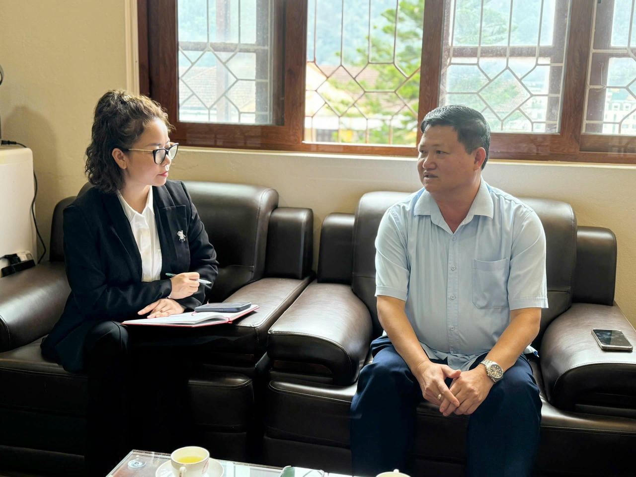 Phó Bí thư Thường trực Thị ủy Sa Pa Thào A Sinh trao đổi với phóng viên. |