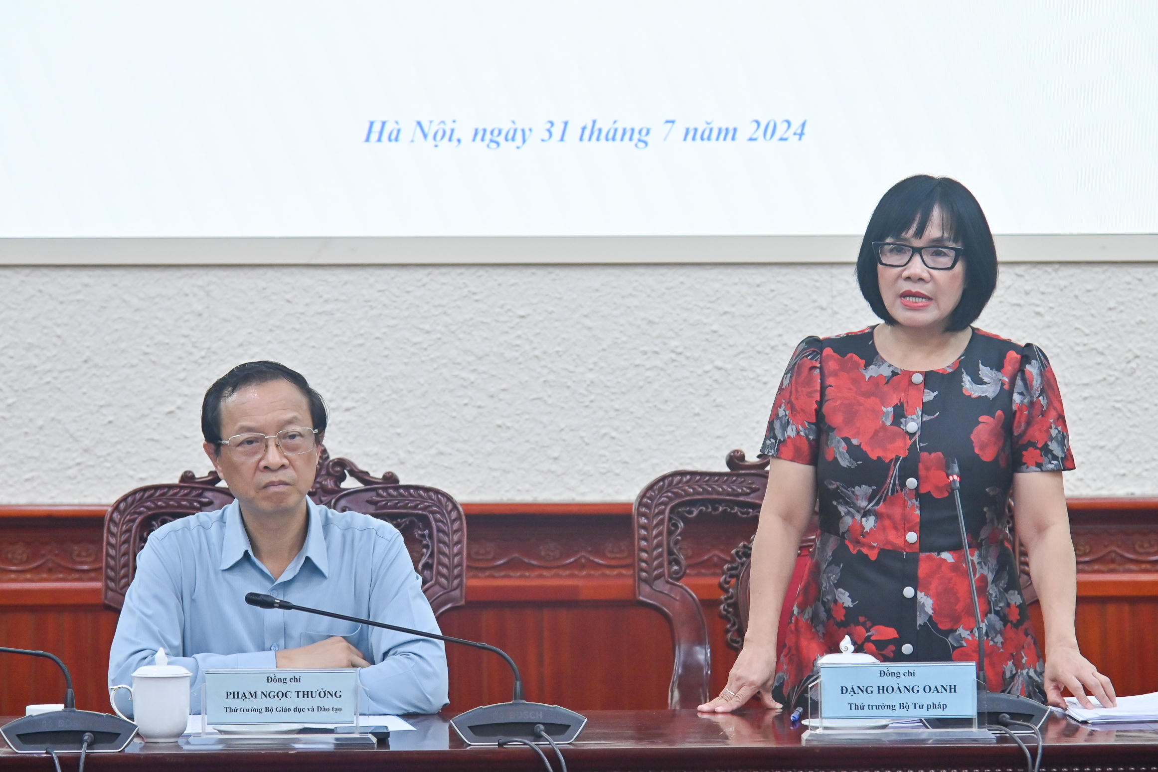 Thứ trưởng Bộ Tư pháp Đặng Hoàng Oanh kết luận cuộc họp. |