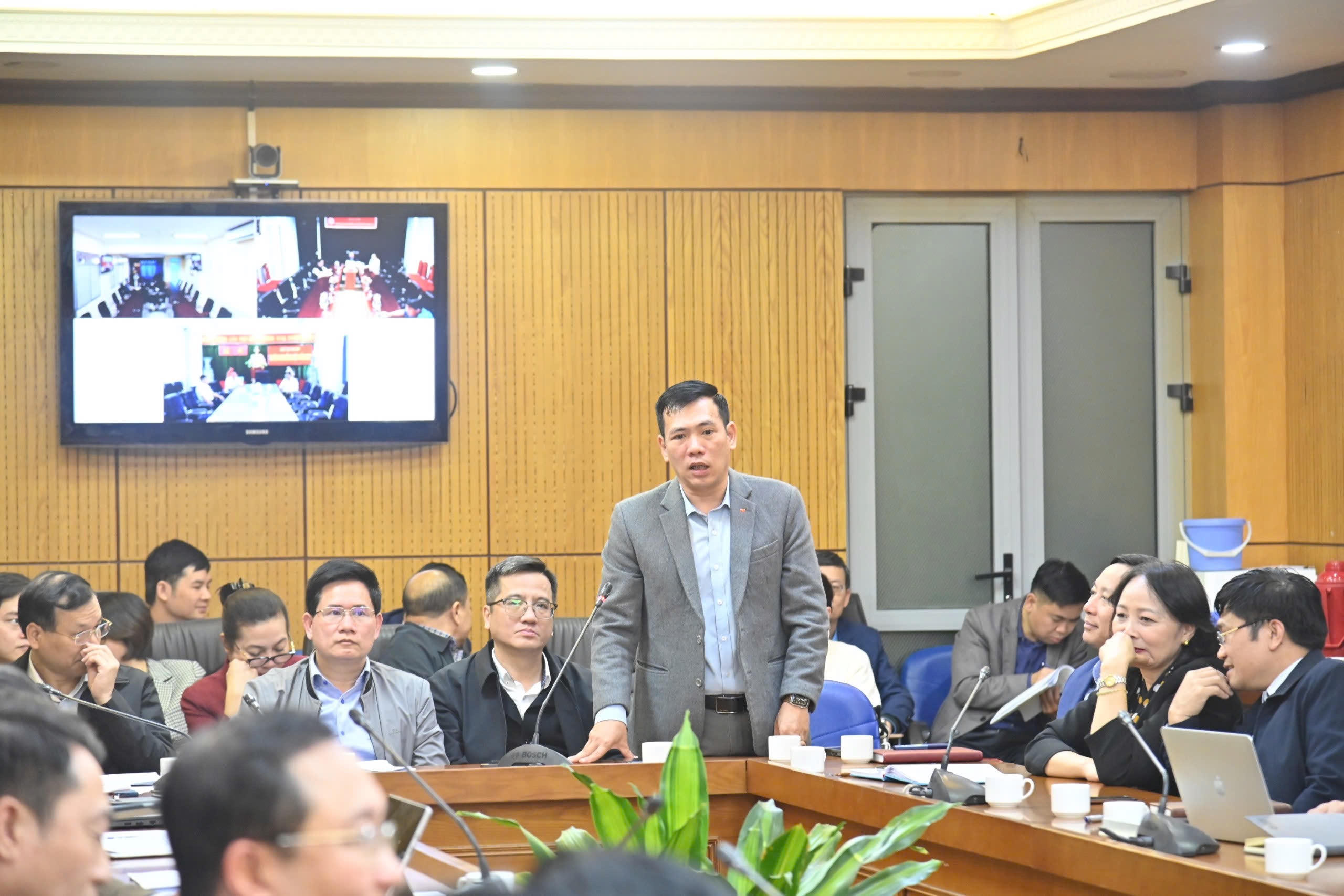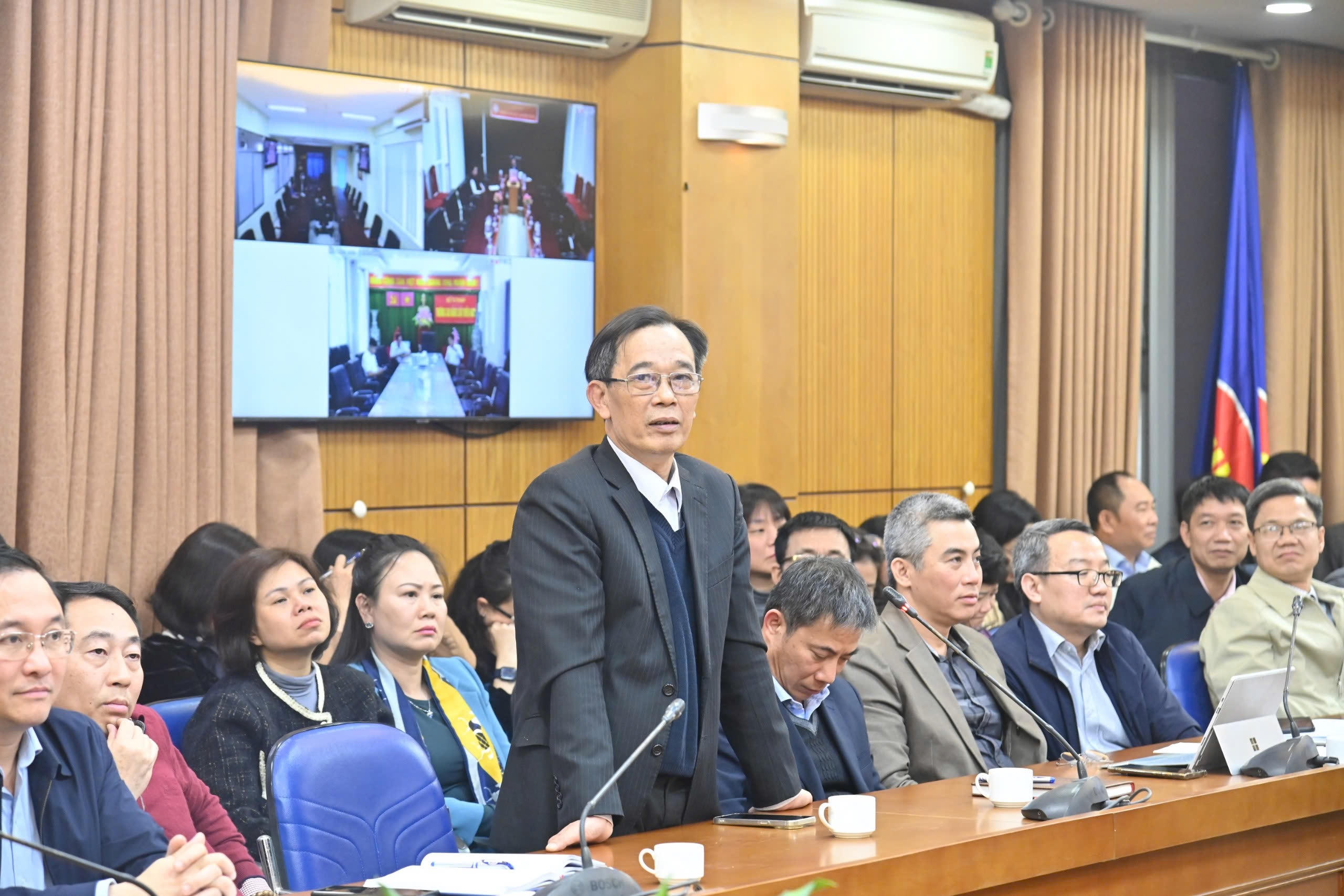 Ông Hoàng Xuân Châu, Hiệu trưởng Trường Cao đẳng Luật miền Bắc nêu ý kiến tại Hội nghị. |