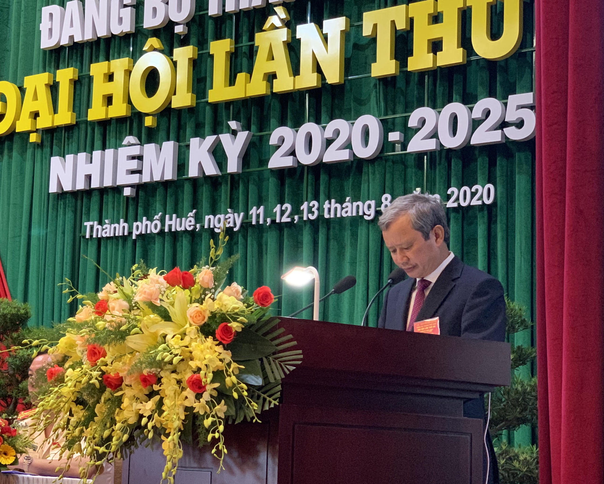 Báo cáo chính trị tại đại hội nêu rõ, nhiệm kỳ qua TP. Huế đã thực hiện đạt và vượt 11/14 chỉ tiêu về phát triển kinh tế, văn hóa – xã hội. Tốc độ tăng trưởng tăng 1,77 lần so với nhiệm kỳ trước. Tổng thu ngân sách Nhà nước trên địa bàn năm 2020 dự kiến đạt 5.051 tỷ đồng, tăng bình quân 6%, trong đó thu ngân sách thành phố theo phân cấp ước đạt 1.365 tỷ đồng, tăng bình quân 7%. Tỷ lệ hộ nghèo giảm 0,1%. Đặc biệt, sau nhiều nhiệm kỳ nổ lực, đến nay 100% tổ dân phố đều có tổ chức Đảng.