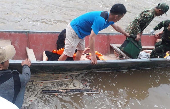 Cán bộ biên phòng dùng thuyền máy vận chuyển nạn nhân khoảng 4 km để đưa về trạm y tế xã.