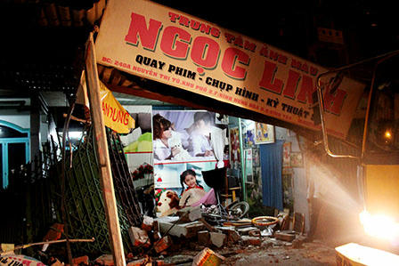 Xe ben đâm sập tiệm chụp ảnh, 3 người thoát chết