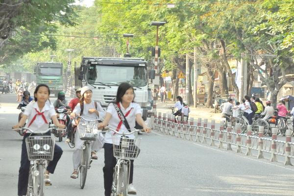 Đơn cử như trưa 16/5, con đường Huỳnh Văn Nghệ ngập trong khói bụi do nhiều chiếc xe ben qua lại. Vào giờ cao điểm nên nhiều học sinh, sinh viên của các trường phổ thông, đại học tại khu vực "hứng đủ". Học sinh, sinh viên phải nép xe sát vào lề đường, thậm chí chạy lên vỉa hè để tránh xe ben nối đuôi nhau chạy ầm ầm, bóp còi inh ỏi.