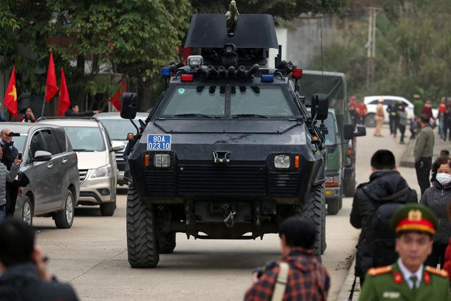 Xe bọc thép đảm bảo an ninh cho chuyến thăm của Chủ tịch Triều Tiên tại ga Đồng Đăng. (Ảnh: Reuters) |