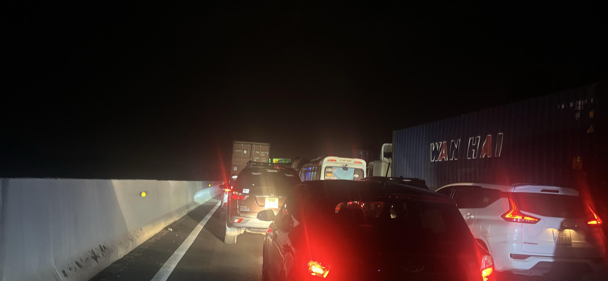 Vụ cháy đã khiến xe ùn ứ, tắc đường nhiều giờ đồng hồ trên cao tốc Hà Nội - Hải Phòng. (Ảnh: Xuân Dần) |