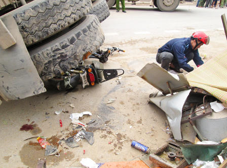 (PLO) - Chiếc xe bồn dừng đỗ trên dốc không chèn bánh, khi tài xế vừa rời khỏi cabin xe thì chiếc xe tự động lùi tự do xuống dốc đè chết hai người ở quán xôi sáng ven đường.