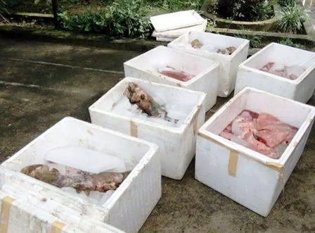 Xe bus chở 200kg nội tạng động vật hôi thối