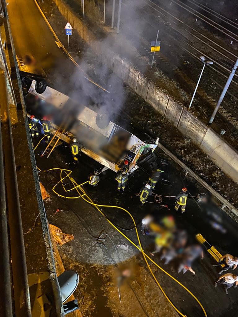 Xe buýt chở du khách rơi khỏi cầu vượt ở Italy, hơn 20 người thiệt mạng