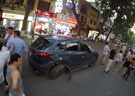 Thông tin ban đầu, thời điểm trên, chiếc xe buýt do lái xe Lê Văn Đức (SN 1963) mang BKS 30T- 4741 của Tổng công ty vận tải Hà Nội -Xí nghiệp Bus Thăng lưu thông theo hướng Tràng Tiền - Hàng Khay đã bất ngờ đâm vào đuôi xe madaz CX5 do anh N.T.T (SN 1979) điều khiển sau đó tiếp tục chuyển hướng và đâm vào xe Air blade do một phụ nữ điều khiển.