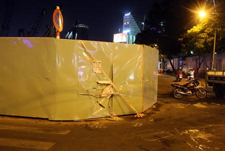 Khoảng 19h, ông Đỗ Văn Đặng (60 tuổi, ngụ quận 1) đi bộ trên đường Lê Thị Hồng Gấm (quận 1) ra công viên 23/9 tập thể dục. Do rào chắn công trình "khu đất vàng - The One" dựng chiếm hết vỉa hè, ông Đặng như nhiều người khác phải đi dưới lòng đường.