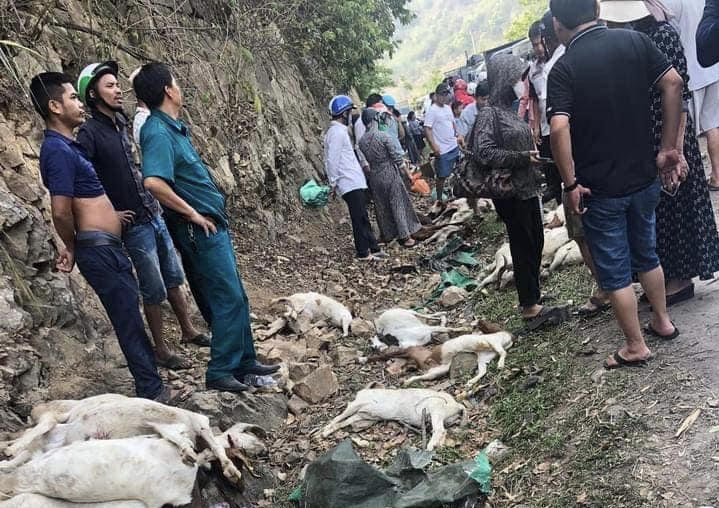 Cả trăm con dê chết và bị thương vì lật xe tải. |