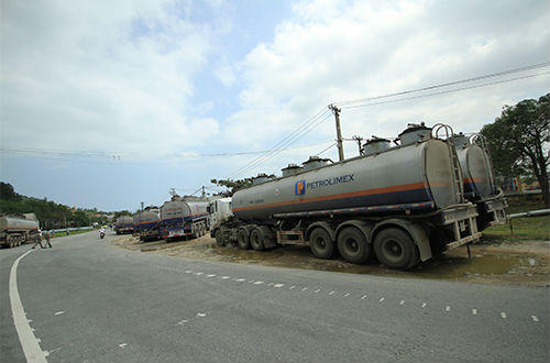 Đến 14h, lực lượng chức năng vẫn đang bảo vệ hiện trường, lên phương án cứu hộ. Hàng chục xe chở xăng, gas bị ách lại trên đường dẫn lên đèo Hải Vân.