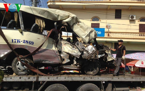 Trước đó, chiếc xe ô tô 29 chỗ mang BKS 17K-2869 trên đường đi lễ chùa Ba Vàng (TP Uông Bí, Quảng Ninh), trên xe chở 28 hành khách, đang trên đường vào chùa thì bất ngờ bị nổ lốp và đâm vào vách núi. Cú đâm khá mạnh đã khiến toàn bộ phần đầu xe khách biến dạng hoàn toàn. Vụ tai nạn đã khiến 2 người tử vong và toàn bộ hành khách trên xe bị thương