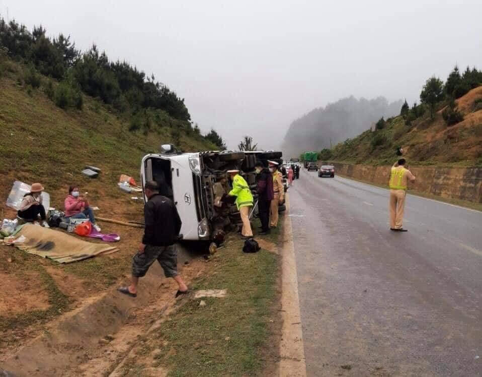 Xe chở khách mất lái bị lật, 1 người tử vong