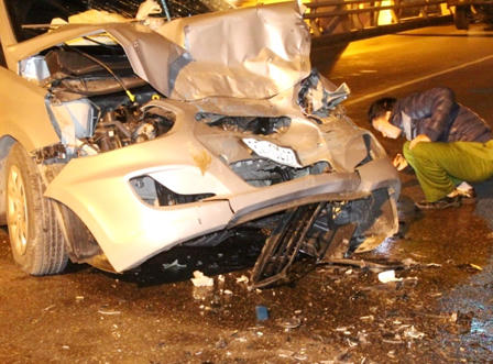 Khi đi qua trạm thu phí Cầu Bến Thủy, xe ô tô con chạy với tốc độ cao, mất lái tông mạnh vào xe tải mang BKS: 37C – 116.63 do tài xế Trần Văn Hào (SN 1979, trú phường Bến Thủy, TP.Vinh, Nghệ An) điều khiển chạy ngược chiều.