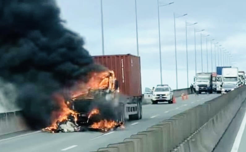 Xe container bất ngờ bốc cháy khi lưu thông trên cao tốc TP HCM - Long Thành