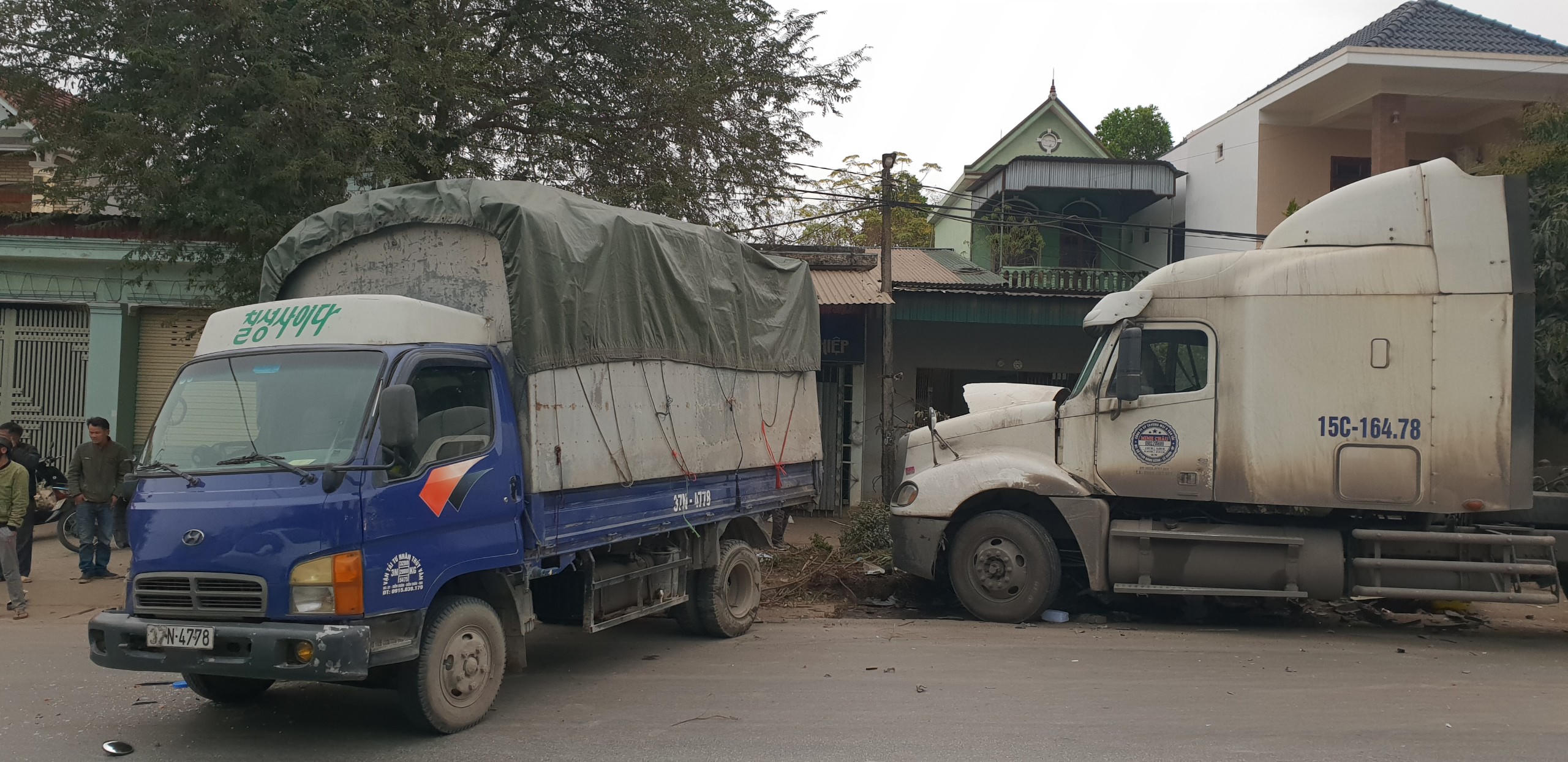 Theo phản ánh của người dân, thời điểm xảy ra tai nạn, hai xe tải 37N – 4778 và xe 37H – 00147 đang dừng đỗ ven đường để ăn sáng..