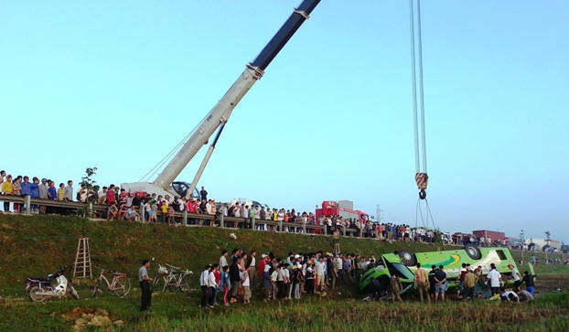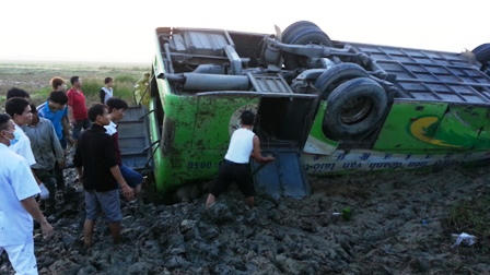Khoảng 5h sáng ngày 29/11, trên Quốc lộ 1A, đoạn đường tránh Vinh thuộc địa bàn xã Nghi Vạn (Nghi Lộc, Nghệ An), chiếc xe khách mang BKS 12LD-0056 (chưa rõ danh tính tài xế) chở công nhân của một công ty đi từ Lạng Sơn vào Nghệ An đám cưới. Bất ngờ tài xế mất lái, xe đâm gãy cọc tiêu bên đường rồi lao xuống ruộng, xe lao xuống ruộng rồi lật ngửa chổng vó lên trời.
