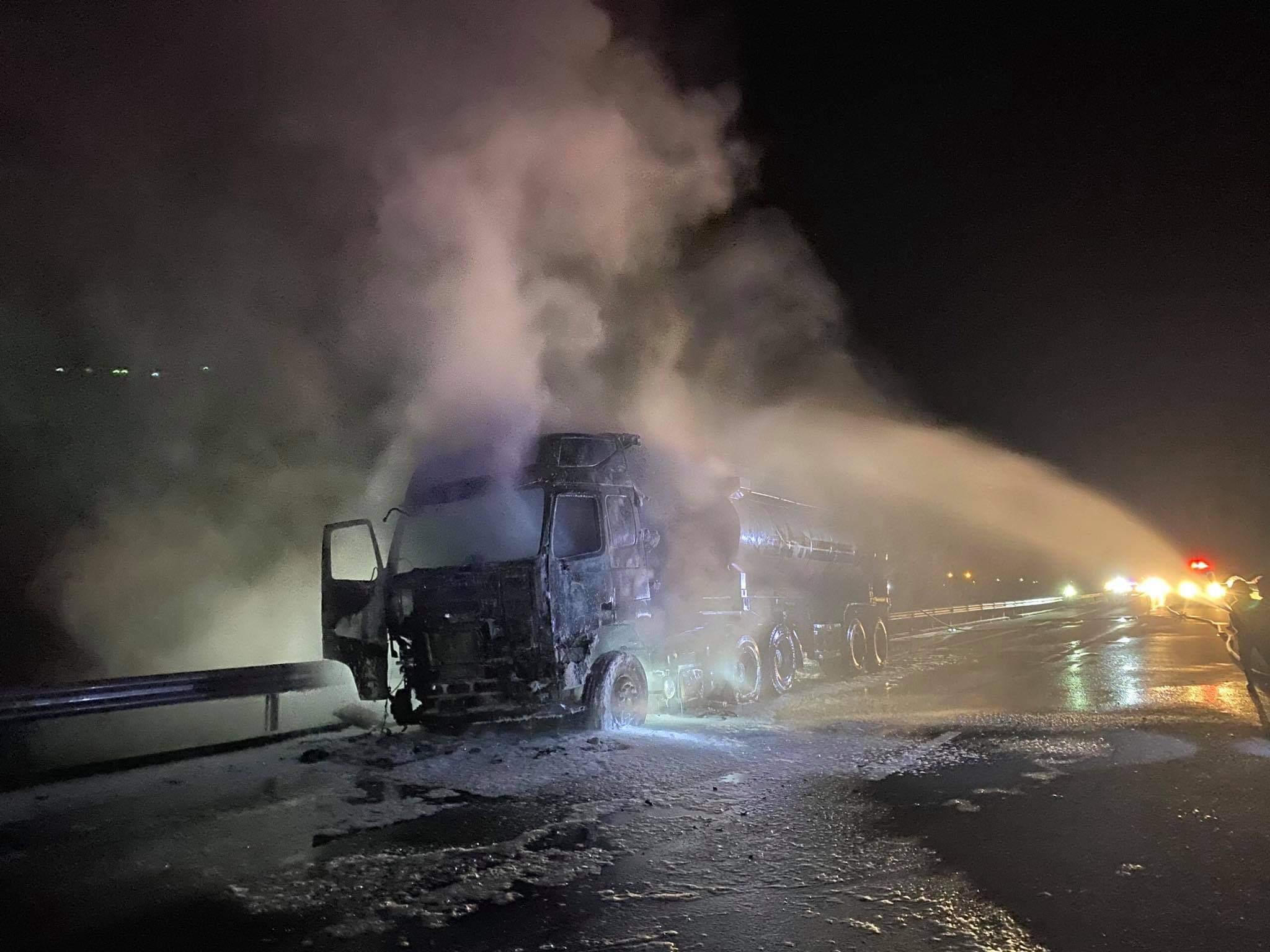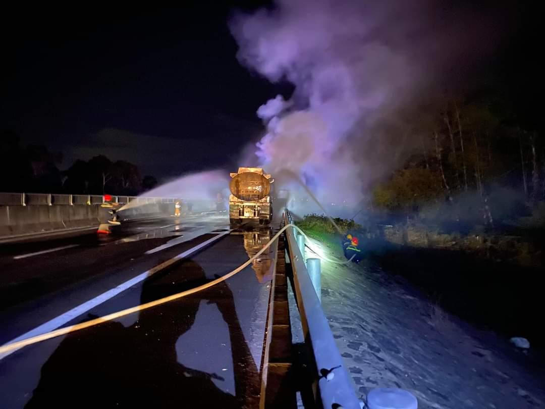 Xe đầu kéo bốc cháy dữ dội khi đang chạy trên cao tốc Đà Nẵng - Quảng Ngãi
