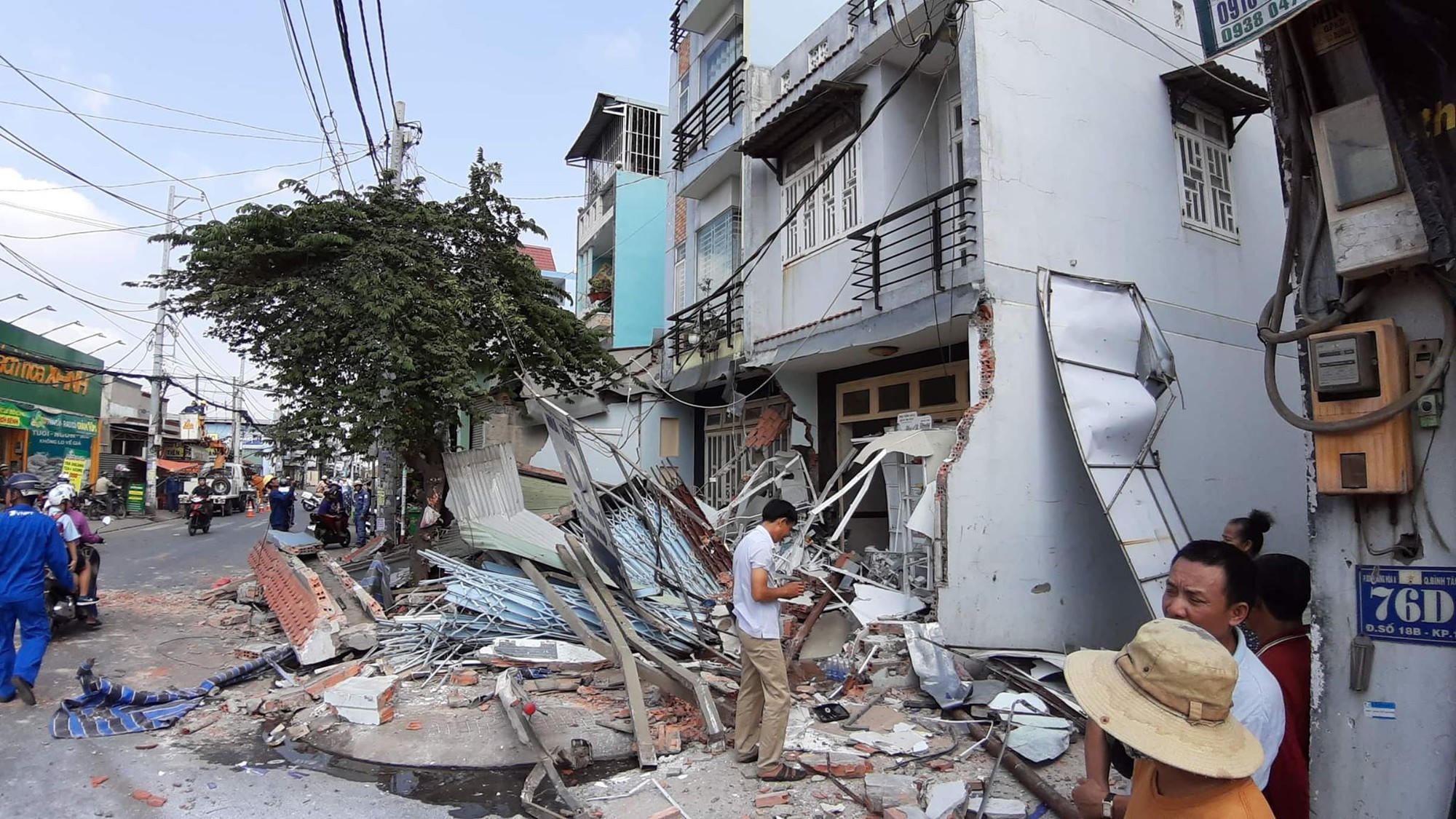 (PLVN) -Xe đầu kéo tông sập 3 căn nhà trên đường 18B, quận Bình Tân, TP HCM khiến tài xế bị thương nặng, 14 người trong 3 gia đình may mắn thoát chết.