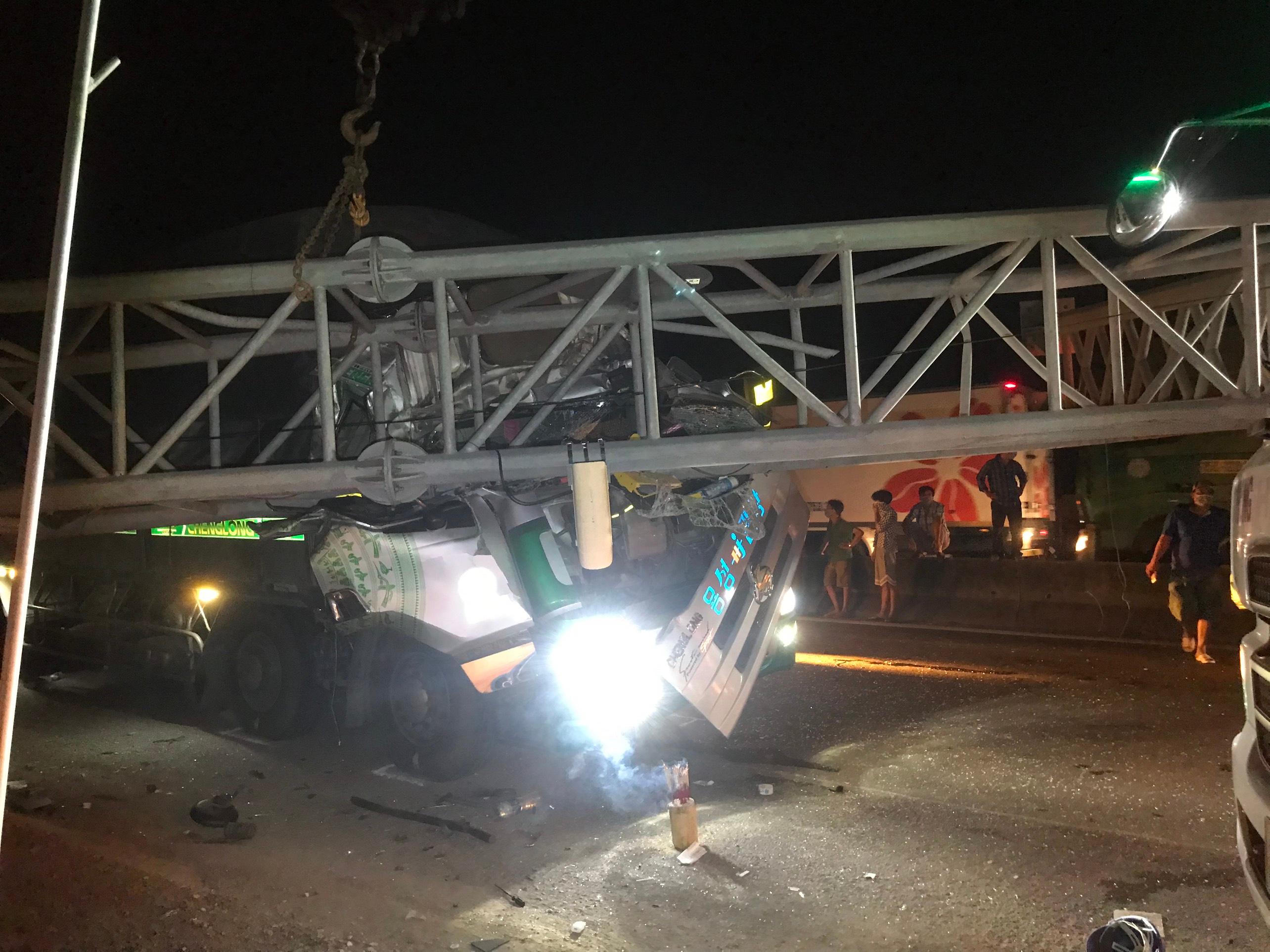 Xe đầu kéo tông sập trụ Giá long môn trên đường dẫn cao tốc, một người tử vong