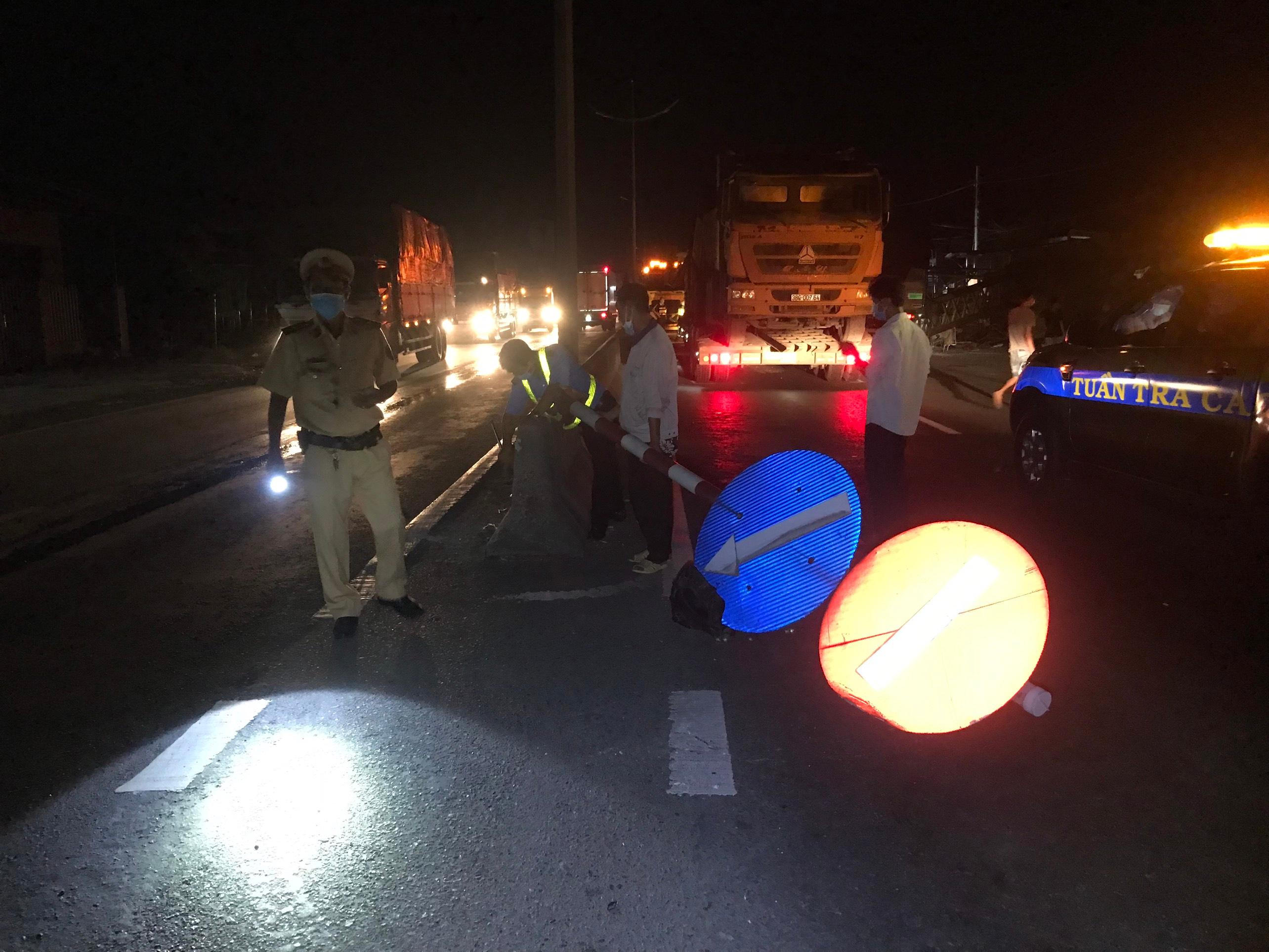 Do vụ tai nạn xảy ra, 2 phương tiện nằm chiếm hết làn đường vào cao tốc nên CSGT phải điều tiết phương tiện ra QL1A và huy động 4 xe cẩu để giải cứu xe tải. Đến hơn 4 giờ sáng ngày 3/7, hiện trường mới được giải quyết xong.
