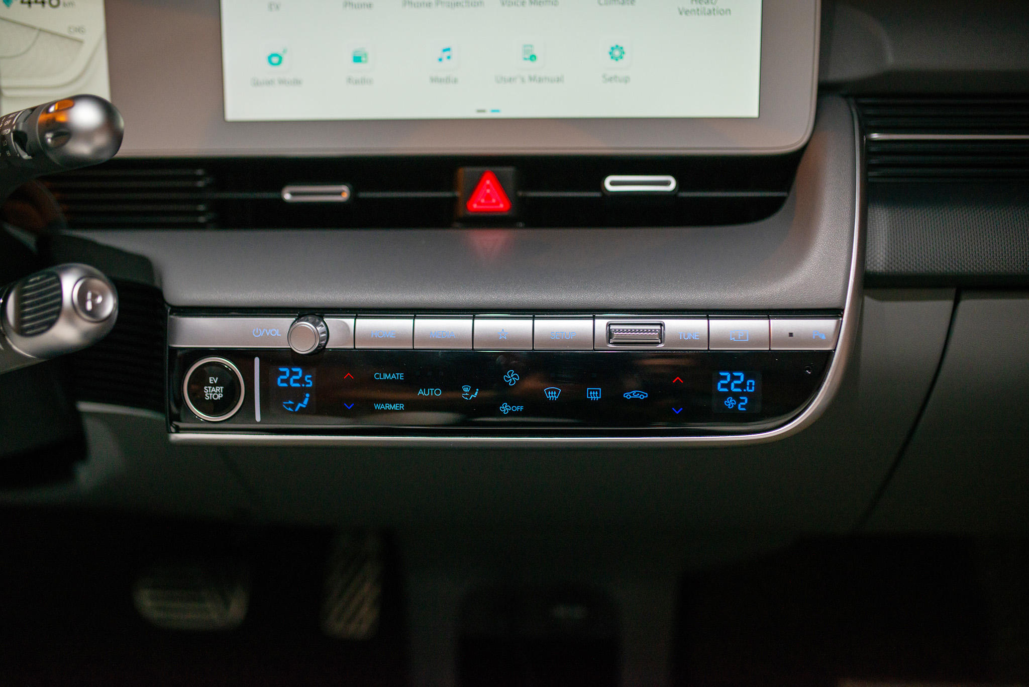 IONIQ 5 sử dụng cần số điện tử tích hợp trên cụm vô lăng, điều này chưa từng có trên các mẫu xe sử dụng động cơ đốt trong, tạo nên sự liền mạch về thiết kế và không gian, đem đến sự rộng rãi, thoải mái tối đa.