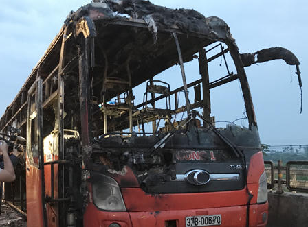 Thông tin ban đầu, chiếc xe khách mang BKS: 37B 006.70 đang chạy theo lịch trình từ Bắc- Nam, khi đi đến đoạn đường trên xe bất ngờ nổ lốp sau bên trái. Tài xế cho xe chạy chậm thêm khoảng 100m nữa mới thì bất ngờ ngọn lửa bốc lên từ phía sau xe.