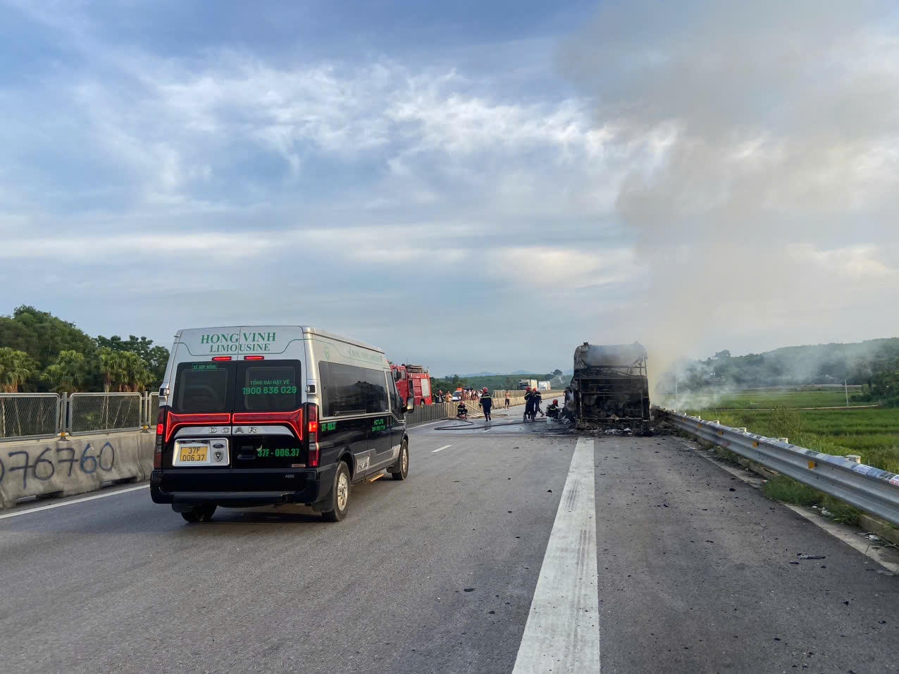 Thông tin ban đầu, khoảng 17h hôm nay,27/7, xe khách của nhà xe V.M đang lưu thông trên cao tốc Bắc - Nam, hướng Hà Nội vào Vinh, đến đoạn QL45 - Nghi Sơn, thì xảy ra cháy.