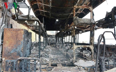 Hậu quả vụ cháy khiến chiếc xe khách của Công ty cổ phần vận tải Xuân Long bị thiêu rụi hoàn toàn, 16 hành khách trên chiếc xe may mắn thoát nạn nhưng tinh thần hoảng loạn.