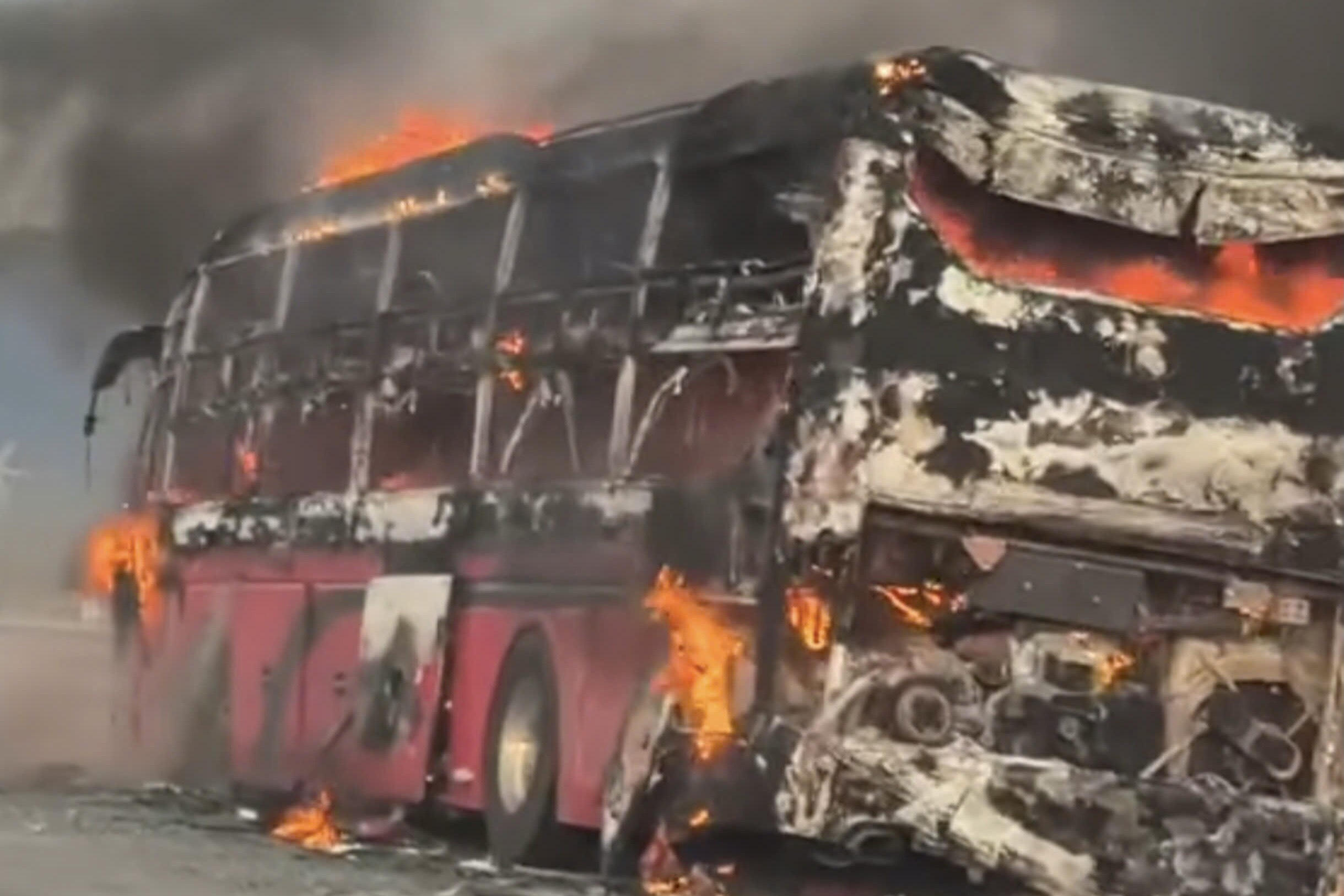 Xe khách cháy trơ khung khi lưu thông trên cao tốc Cam Lâm – Vĩnh Hảo