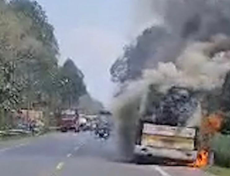Xe khách chở 19 người đi đám cưới bốc cháy trên quốc lộ