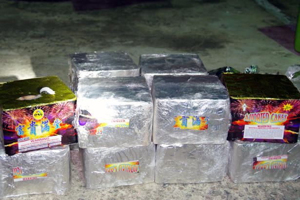 Qua kiểm tra, lực lượng chức năng phát hiện 46 tấm gỗ hương (khoảng 0,7m3), 12 hộp pháo nổ do nước ngoài sản xuất, không có giấy tờ hợp lệ.