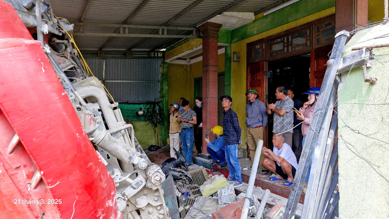 Sau đó xe ô tô đầu kéo và ô tô khách tiếp tục đâm vào nhà của ông Dương Văn V. (thôn 1, Đồng Trạch, huyện Bố Trạch).
