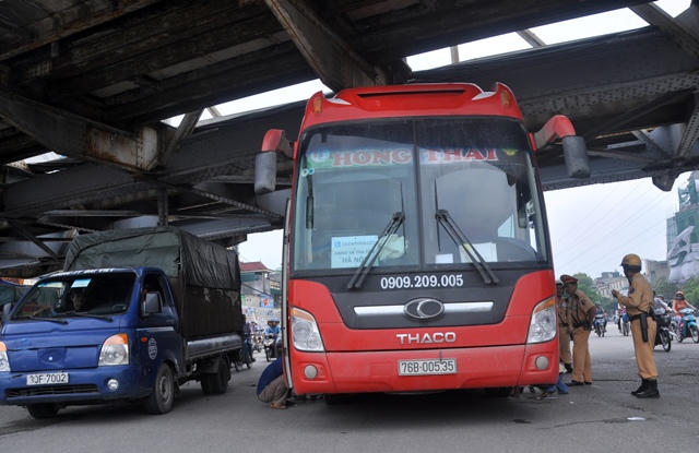 Sự việc xảy ra vào khoảng 9h30 ngày 1/5, chiếc xe khách giường nằm chất lượng cao của nhà xe Hồng Thái có BKS: 76B – 005.35 đang đi theo hướng cầu Chương Dương về Yên Phụ. Khi qua đoạn gầm cầu Long Biên, chiếc xe khách này đã bị kẹt dưới gầm cầu.