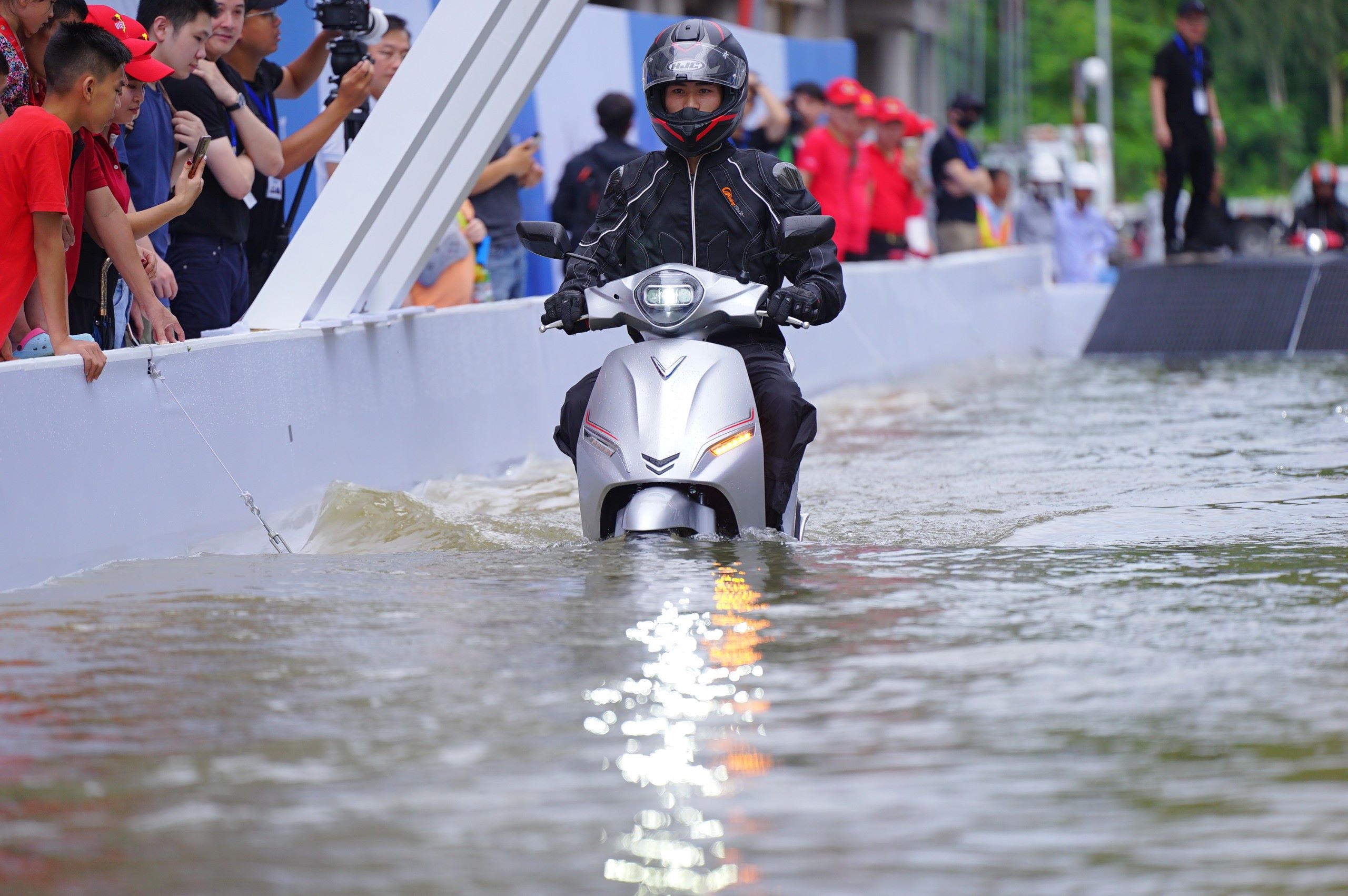 Được biết, pin và động cơ xe máy điện VinFast có thể chịu mức ngập 0.5m trong khoảng 30 phút và để phù hợp với người tiêu dùng Việt, các mẫu pin xe máy điện VinFast đều được thử nghiệm ngâm 24 giờ trong nước theo tiêu chuẩn Việt Nam.