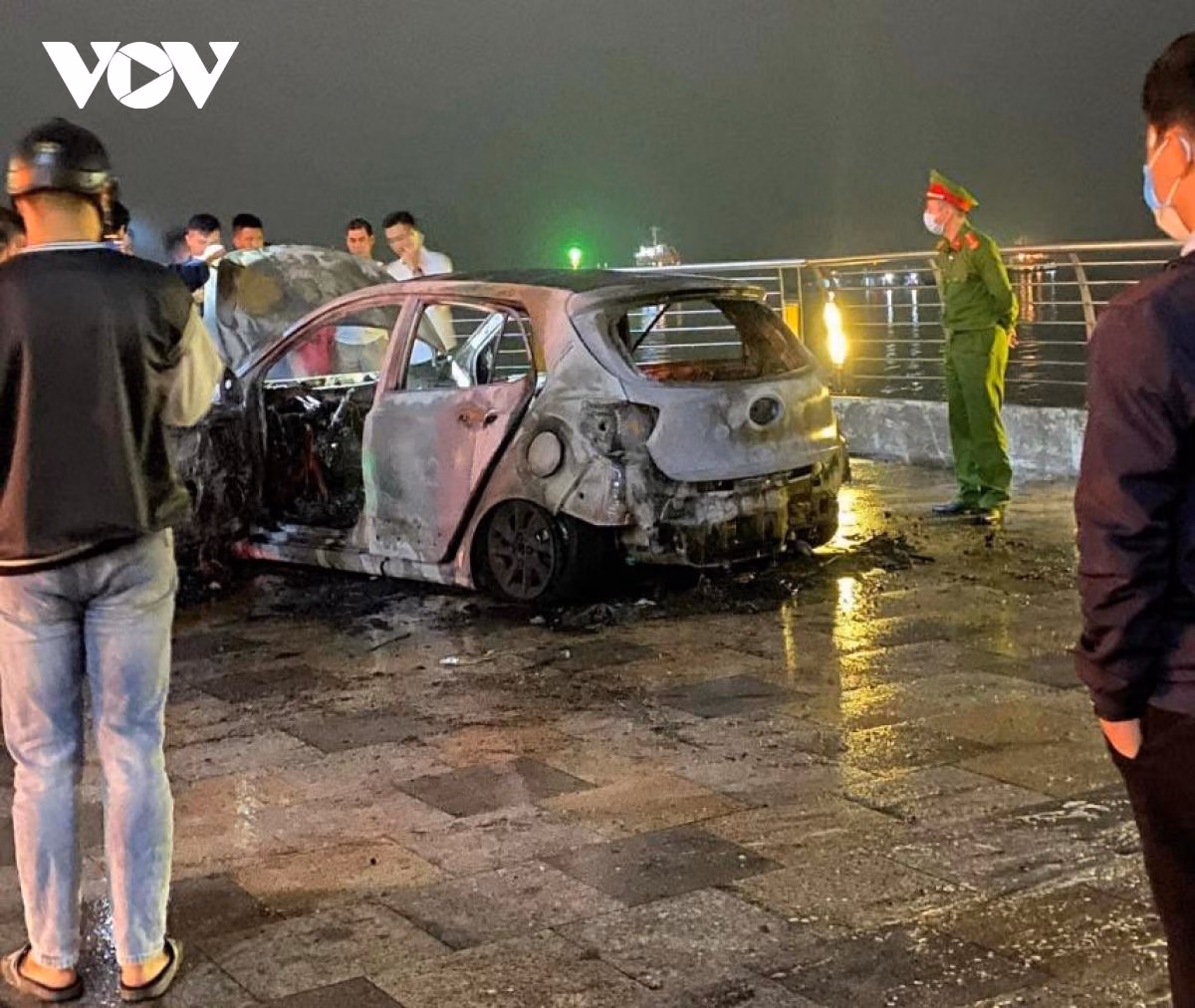 Xe ô tô 5 chỗ BKS 35A-270.xx đang di chuyển hướng từ Vincom về bến phà cũ thì bất ngờ bốc cháy. Ngay khi phát hiện ngọn lửa, lái xe đã cố gắng điều khiển xe lên vỉa hè, lấy được giấy tờ, tài liệu cần thiết trên xe và điện báo cơ quan cơ quan chức năng.