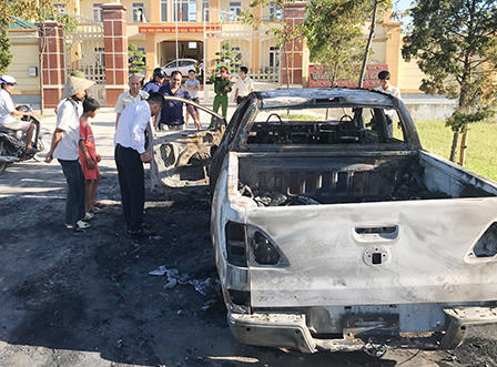 Xe ô tô bốc cháy khi đậu trước trụ sở VKSND huyện Nghi Lộc