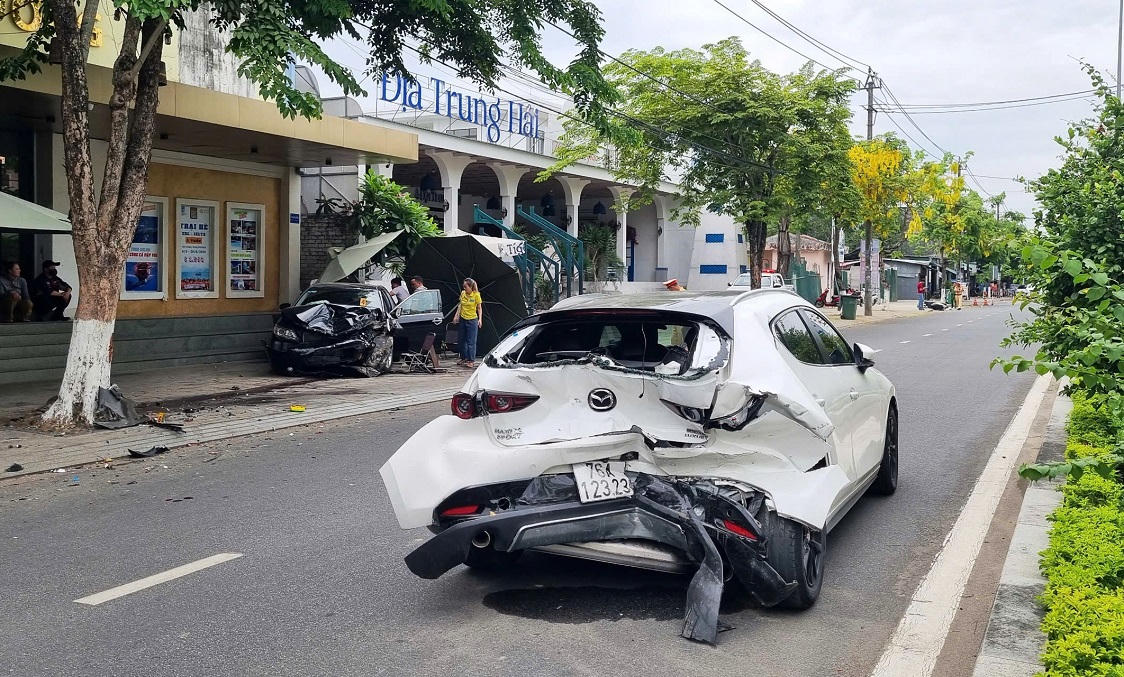 Tuy nhiên, vụ việc chưa dừng lại. Ô tô 76A-043.95 tiếp tục lao nhanh, đâm mạnh vào đuôi xe ô tô mang biển kiểm soát 76A-123.23 đang đỗ bên đường, cách hiện trường va chạm đầu tiên khoảng 50m.