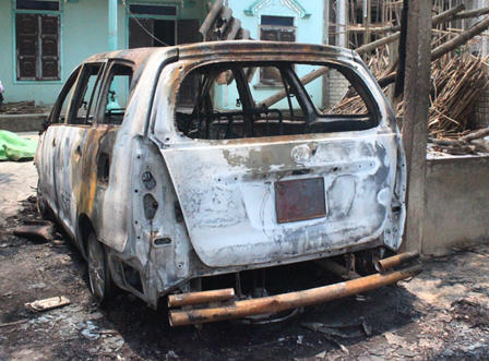 Khoảng 2h sáng ngày 26/4, trong lúc cả gia đình anh Lê Công Cần (trú tại xã Khánh Thành, Yên Thành, Nghệ An) đang ngủ thì nghe tiếng nổ lẹt đẹt phát ra từ ngoài sân. Anh Cần tỉnh giấc đi ra ngoài kiểm tra thì phát hiện có ngọn lửa bốc lên từ lốp trước chiếc xe ô tô BKS 37A – 237.43. Chiếc xe này anh Cần mượn của người bạn.