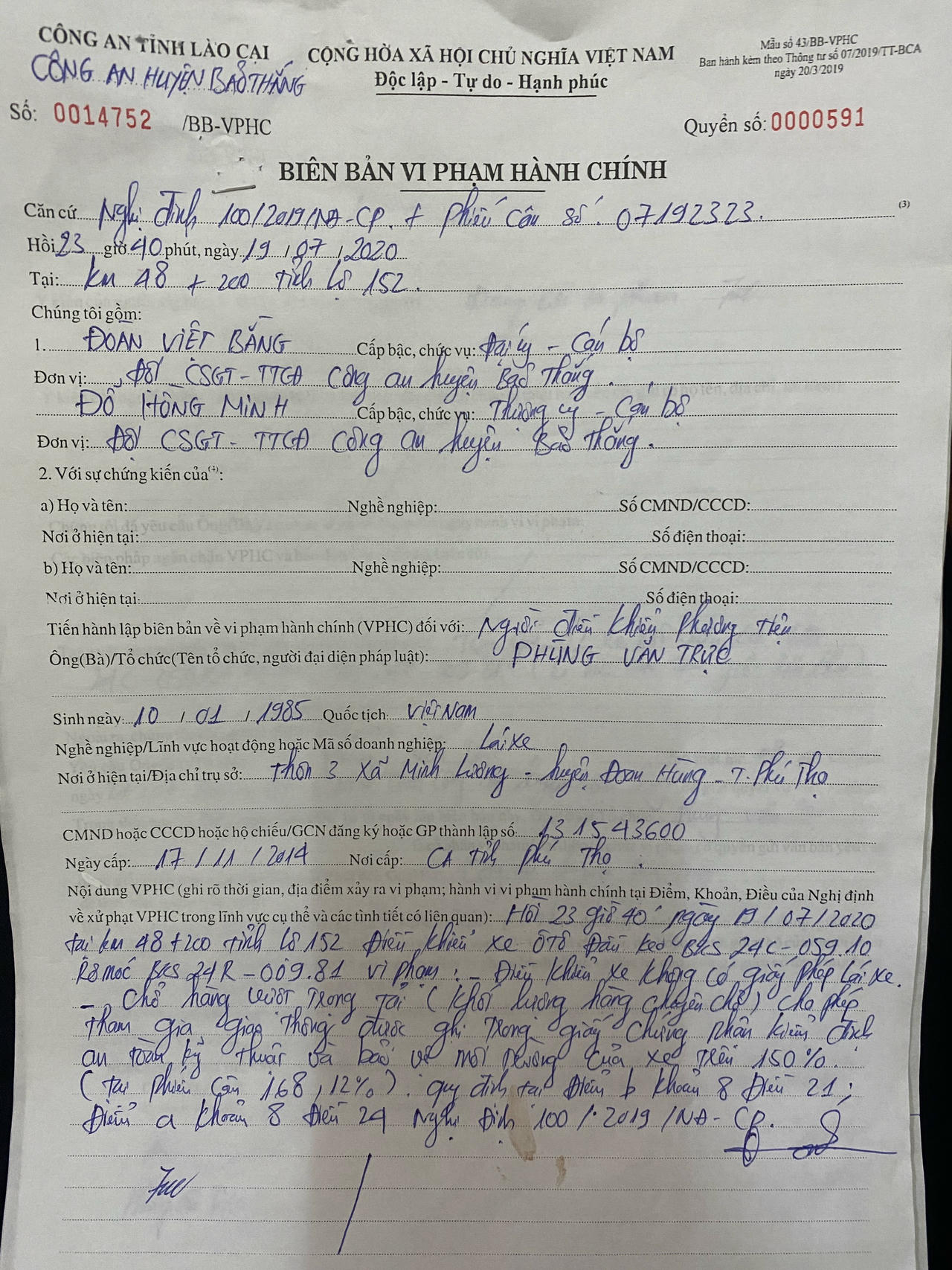 Cung cấp thêm thông tin, Trung tá Ngô Mạnh Hà cho biết, ngày 19/7/2020 đội cũng đã kiểm tra và xử lý được 02 xe vi phạm hành chính về quá khổ, quá tải là xe mang BKS 24C05910 kéo theo rơ móc BKS 24R00981".