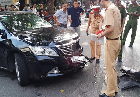 Tại hiện trường, chiếc ôtô mang nhãn hiệu Toyota Camry BKS: 30A 023.42 và Mini Cooper BKS: 29A 785.40 bị biến dạng do va chạm mạnh. Cạnh đó, một chiếc ôtô Honda Civic BKS: 29Z 3293 cũng bị xây xát, một chiếc xe máy Piagio Zip BKS: 30N4 3023 bị hư hỏng nặng.