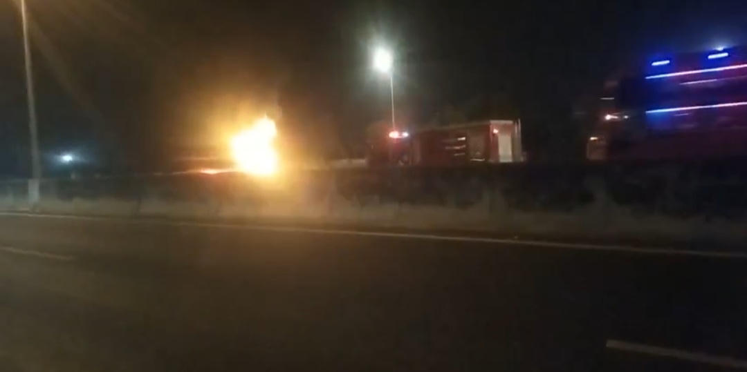 Tại đây, tài xế phát hiện ở phần đuôi phía sau xe có lửa và khói bốc lên. Khi dừng xe thì ngọn lửa bùng phát mạnh, tài xế cùng người dân dùng bình chữa cháy dập lửa nhưng bất thành nên báo cơ quan chức năng.