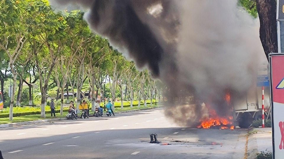 Khoảng 12h ngày 18/6, một xe tải mang biển kiểm soát tỉnh Thanh Hóa chạy trên đường Tôn Đức Thắng (quận Liên Chiểu, Đà Nẵng) theo hướng ra đường biển Nguyễn Tất Thành thì bất ngờ bốc cháy ở thùng xe.