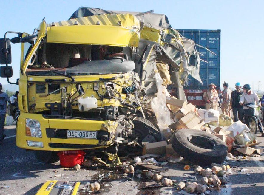 Hậu quả, phần đầu bên trái xe tải BKS 34C 06963 bị bẹp dúm, phần thùng xe tải bị đâm rách khiến hàng hóa trên xe đổ xuống đường. Tài xế xe tải bị thương nặng được người dân đưa đi bệnh viện cấp cứu sau đó.